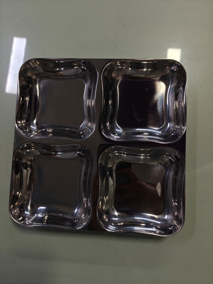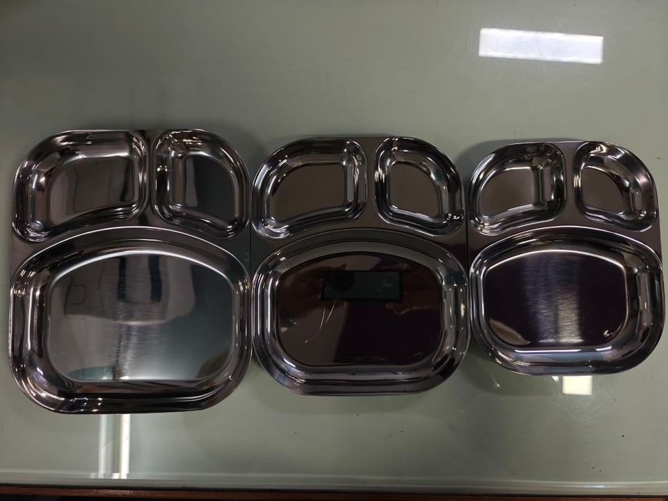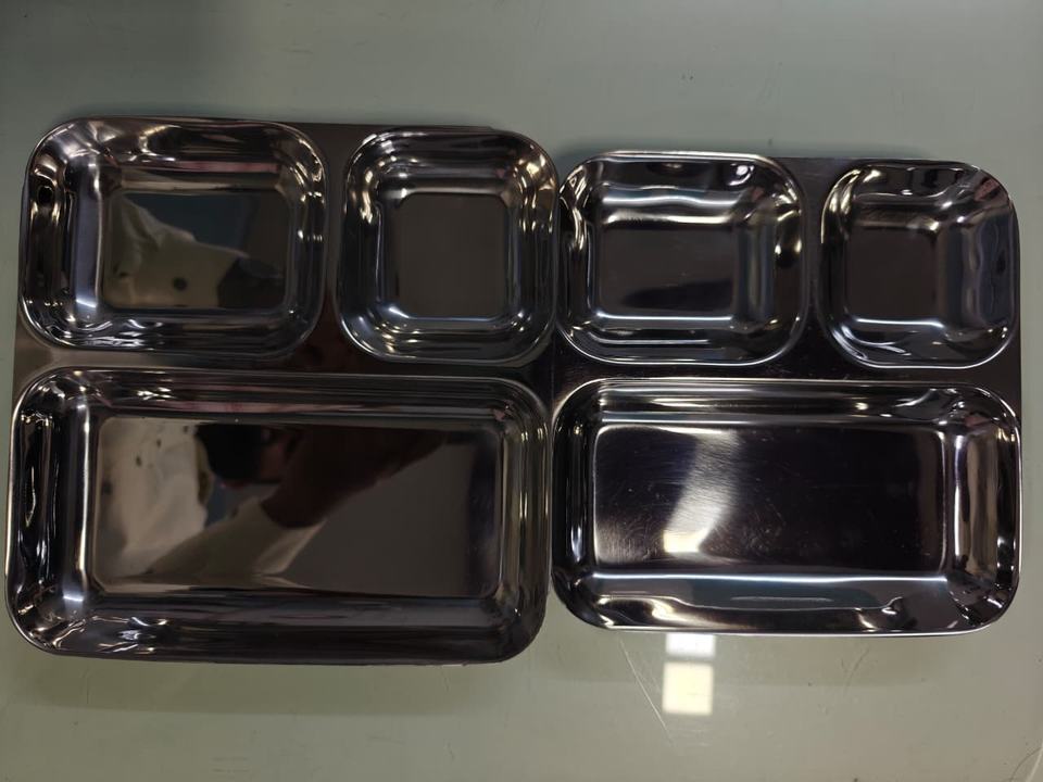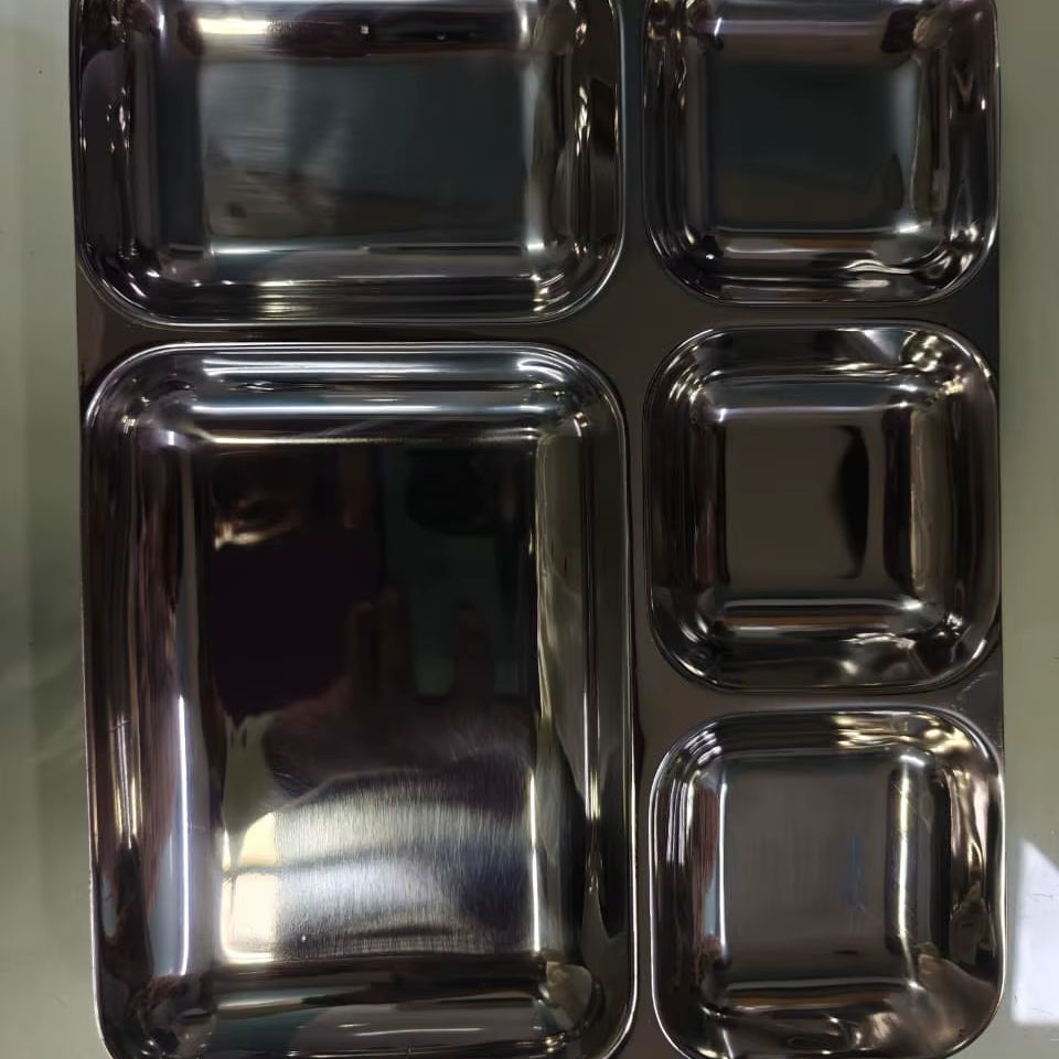 Stainless Steel Reusable 5 Compartment Dinner Tray Bhojan Thal Mirror Finish Food Serving Plate for Restaurants Hostels Canteens