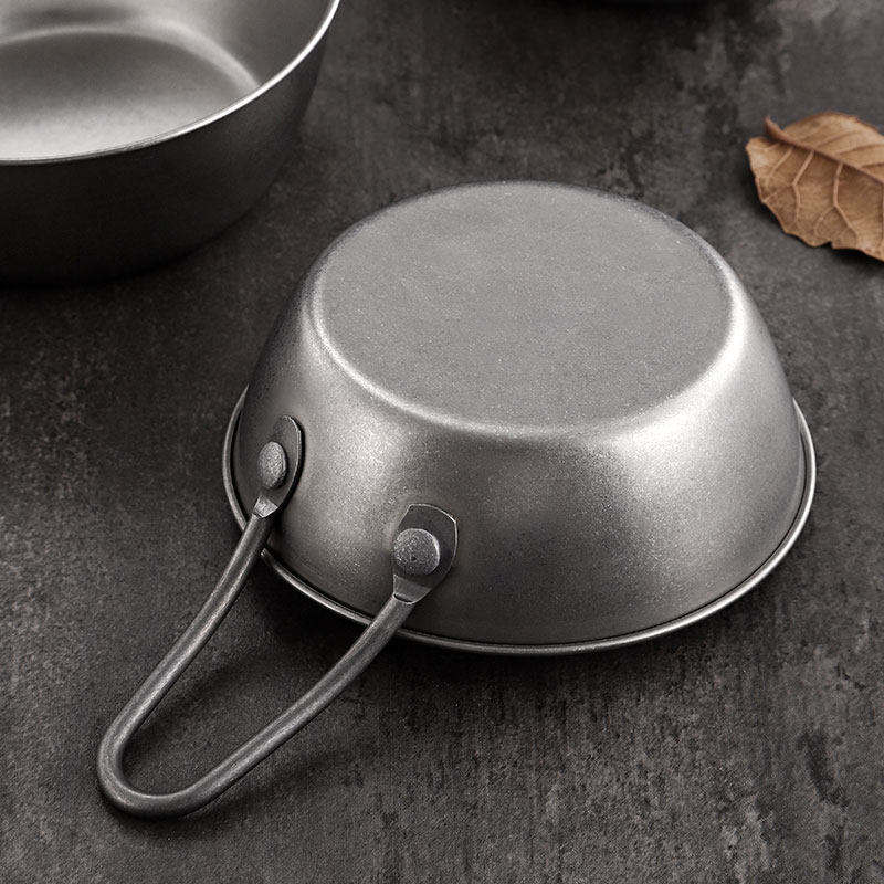 Bol à vin de riz en acier inoxydable avec poignée, vaisselle de camping, bol de service chaud/froid, ensemble de vaisselle de couleur unie