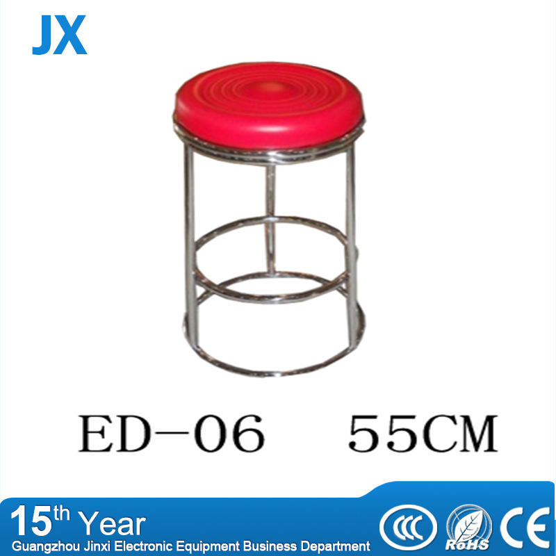 Tabouret de bar rond en acier inoxydable avec assise rouge, durable, usage commercial