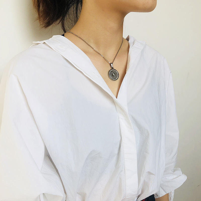 Pendentif médaille ronde en acier inoxydable plaqué or collier avec incrustation de zircon gravé Bible verset bijoux cadeau pour unisexe