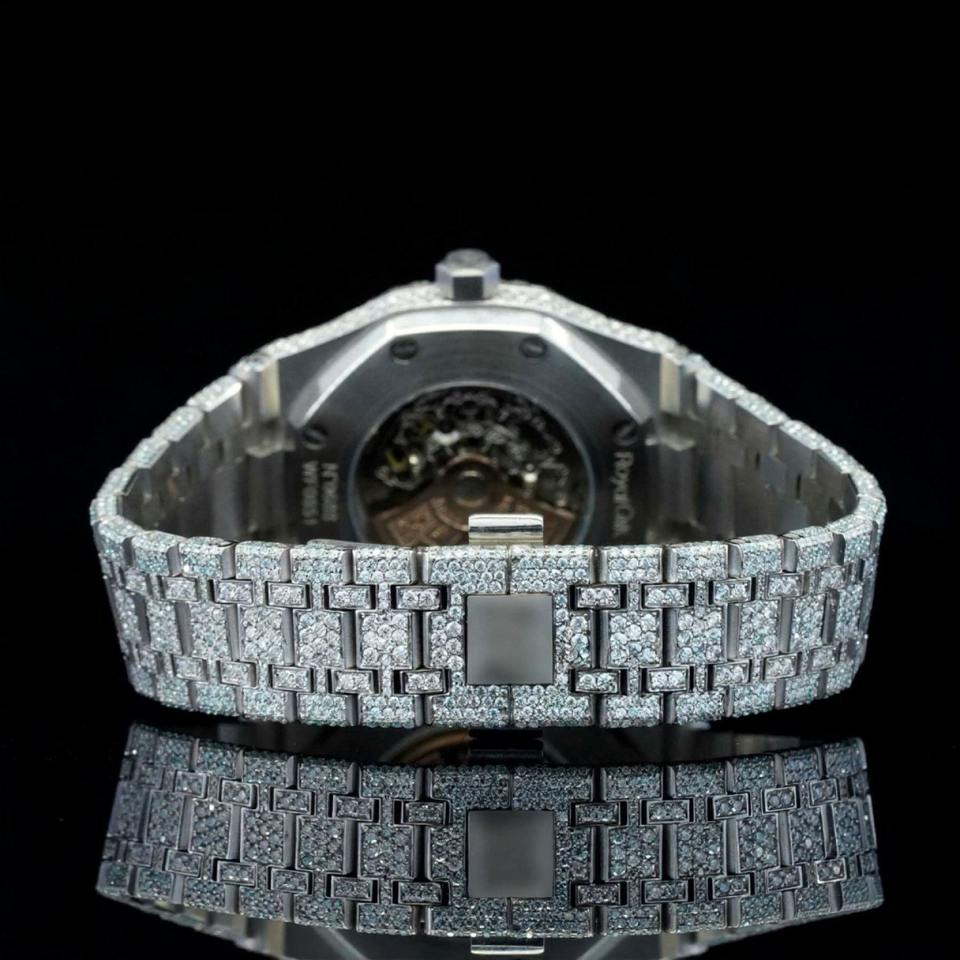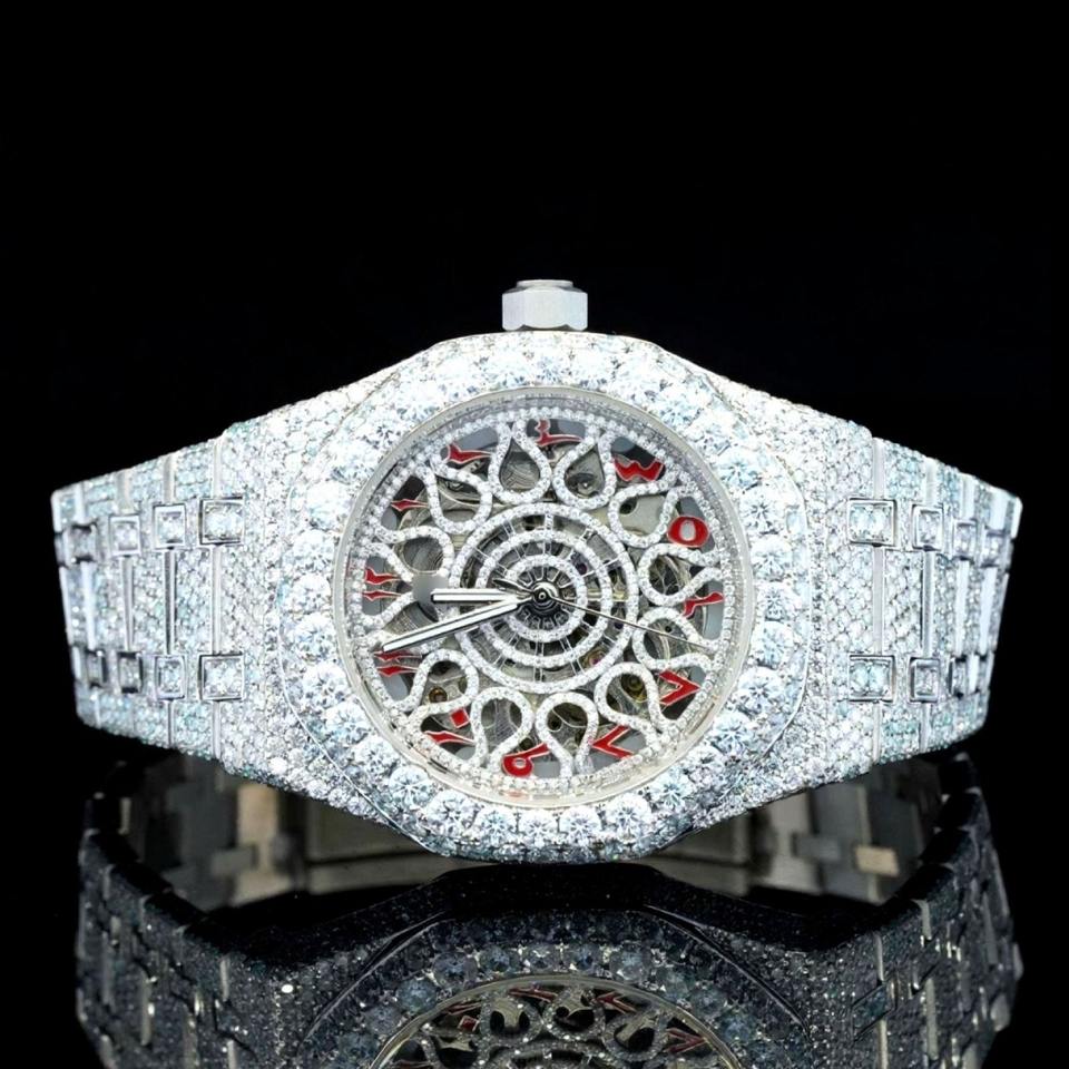 Montre de mode unisexe en acier inoxydable avec cadran arabe rouge et diamants Moissanite de qualité VVS argentés