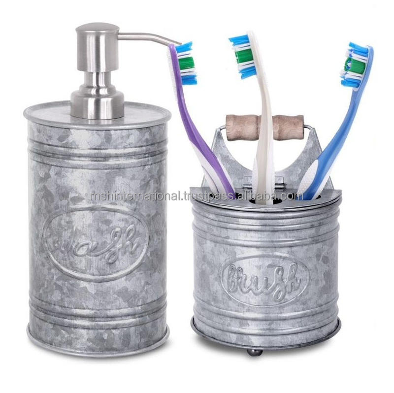Ensembles d'accessoires de salle de bain en acier inoxydable de forme ronde 4 pièces Distributeur de lotion Tumbler Porte-savon Porte-brosse à dents