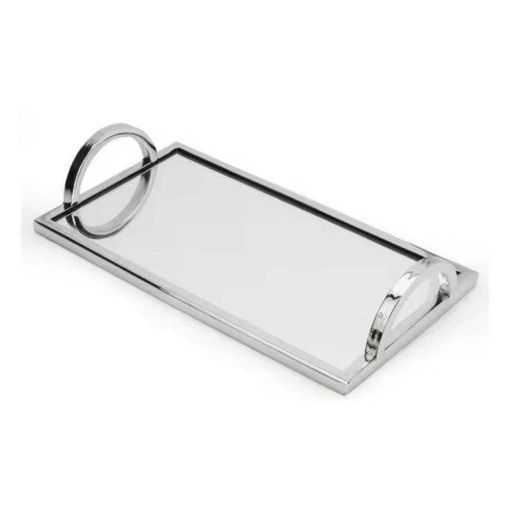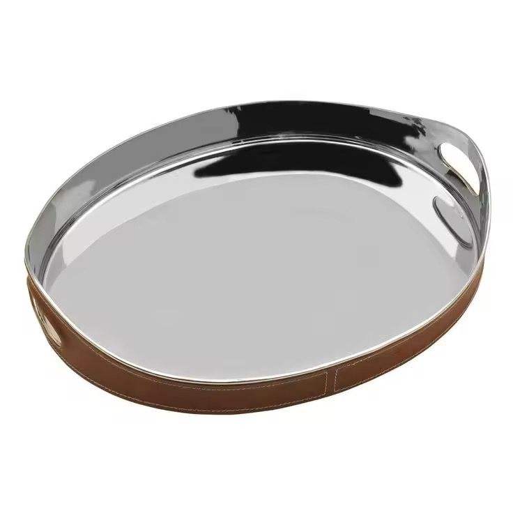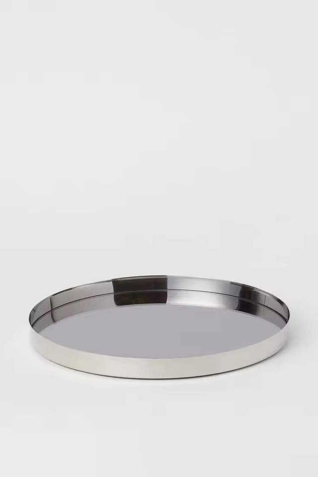 Plateau à collations rond en acier inoxydable avec poignées, articles pour la maison et la cuisine, plateau de service pour pizza argenté