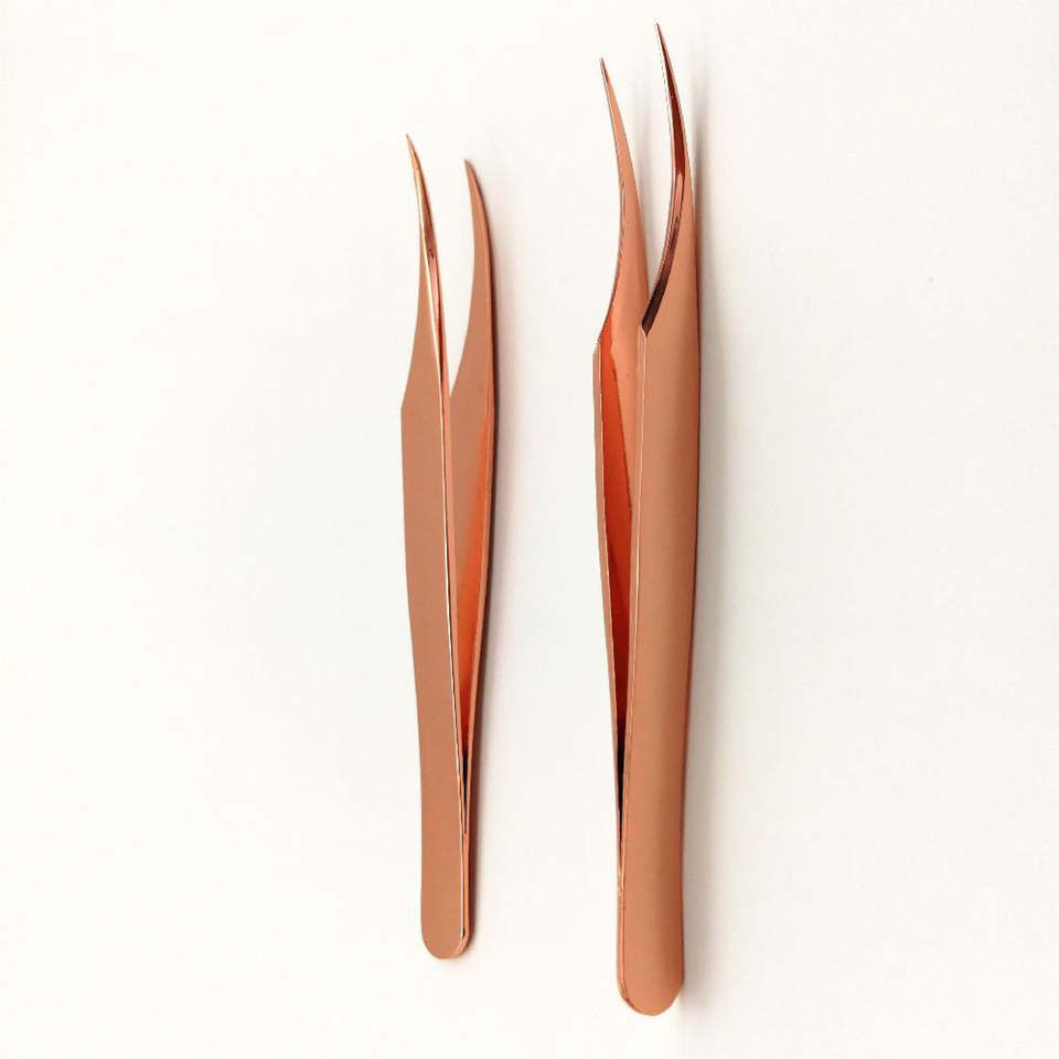 "Pince à épiler professionnelle en acier inoxydable en forme de S et d'extension de cils en forme de I Set 2 Pcs Or rose avec étui"