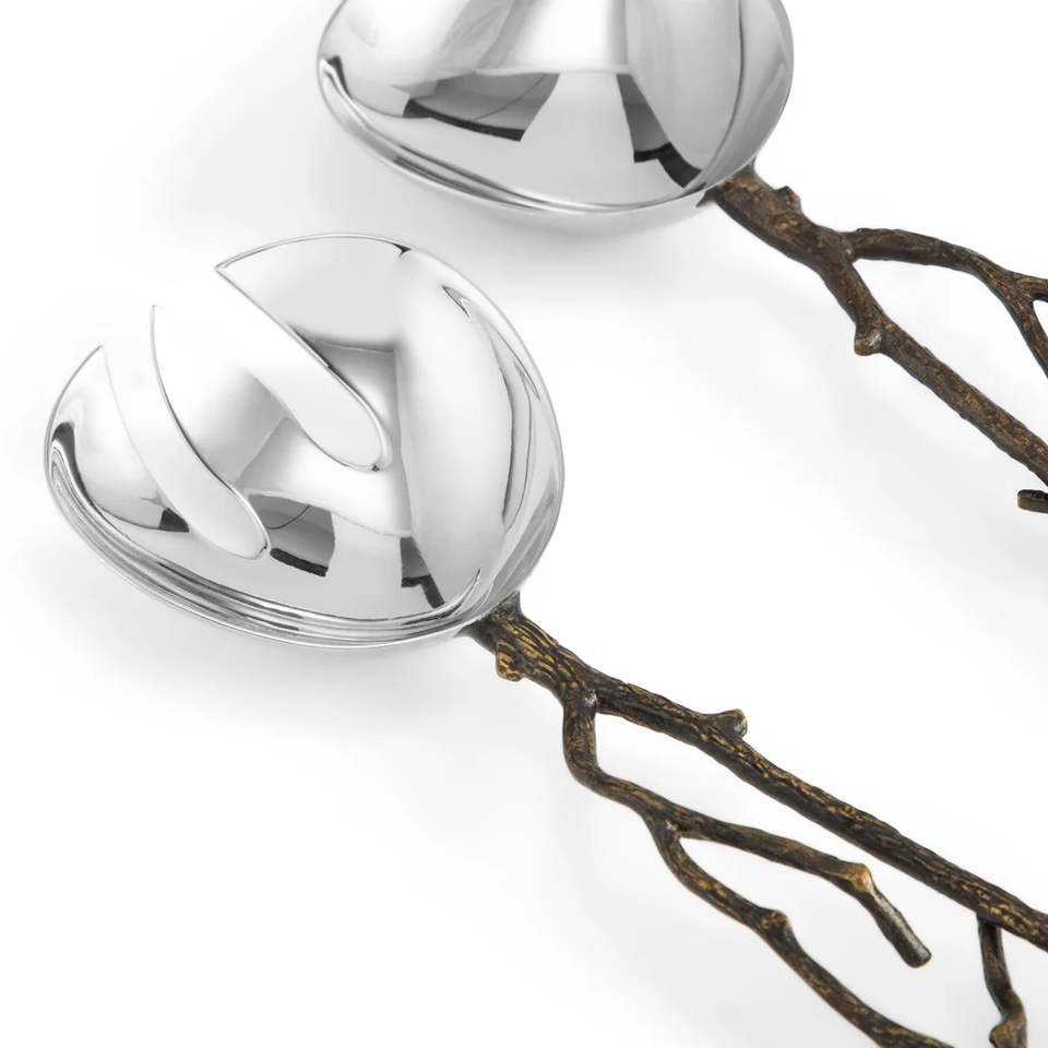 Ensemble de serveurs à salade en acier inoxydable avec poignées de branche rustiques