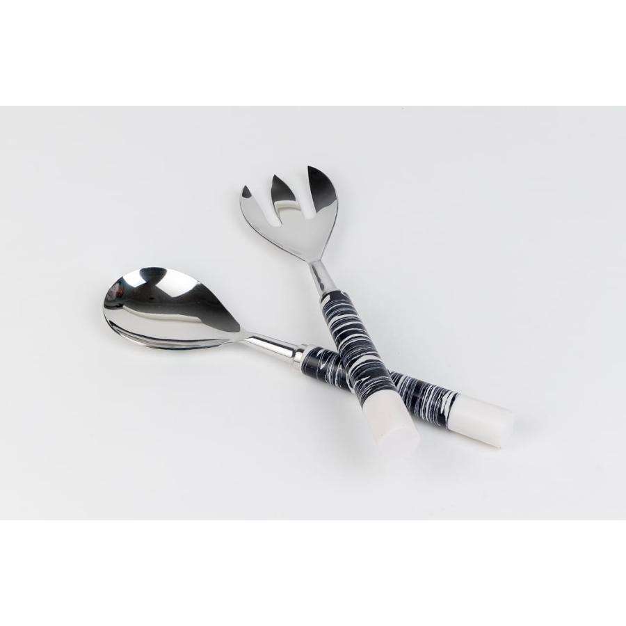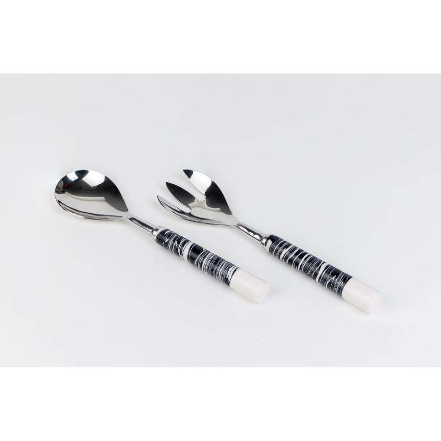 Ensemble de 2 cuillères et serveurs à salade en acier inoxydable, ensemble de couverts en marbre, artisanat, style unique, ensemble de service à salade, fournitures de restaurant