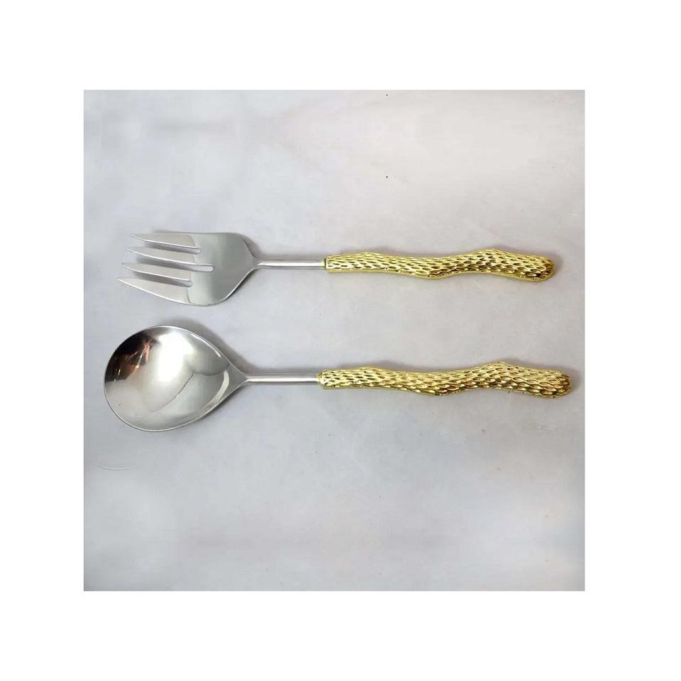 Service à salade en acier inoxydable avec poignée de Designer ensemble de couverts en métal couteau et cuillère couverts au Design moderne pour décoration de mariage à la maison