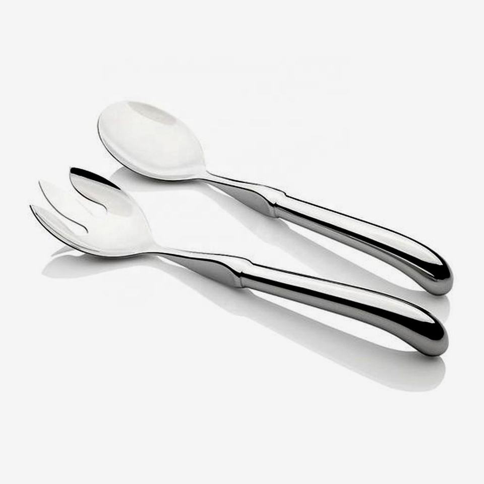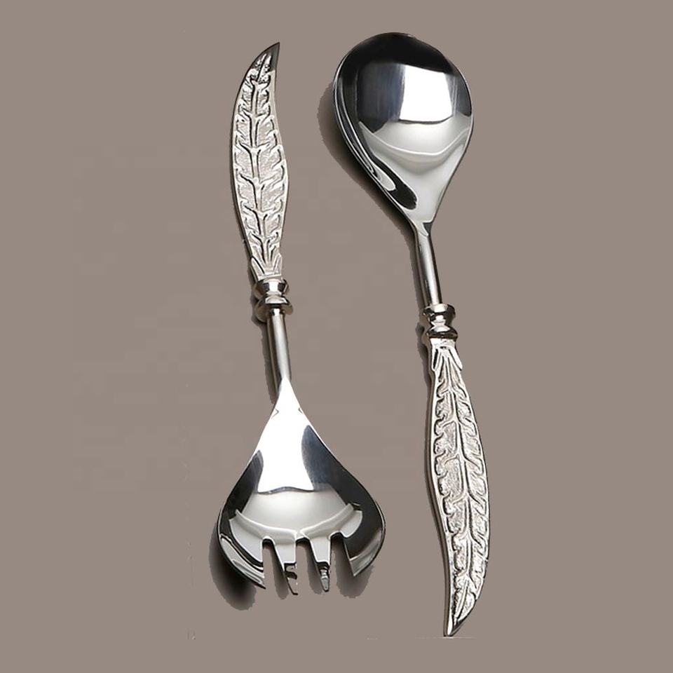 Serveurs à salade décoratifs en métal argent poli Serveurs à salade en acier inoxydable avec poignée en forme de feuille
