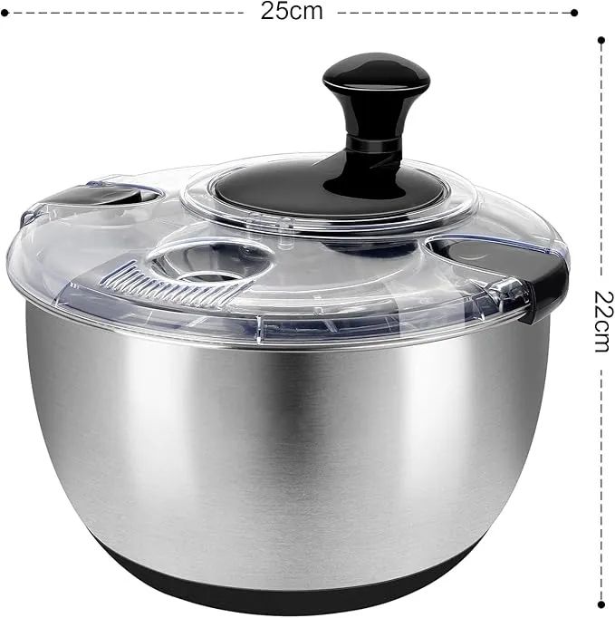 Essoreuse à salade en acier inoxydable, lave-légumes de 4.2 qt, séchoir à laitue sans BPA avec manivelle, base antidérapante lavable au lave-vaisselle