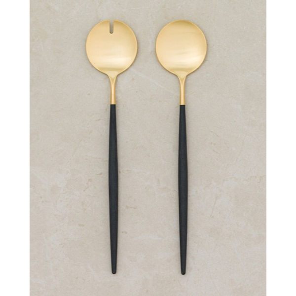 Ensemble de cuillères à salade en acier inoxydable avec poignée en or brossé Blaqck Vente en gros de cuillères de service à salade en acier inoxydable pour la restauration