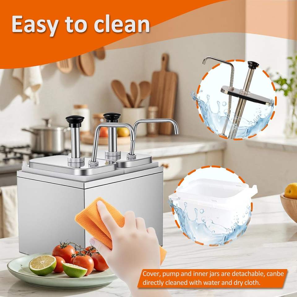Conteneur à sauce en acier inoxydable avec station de pompage pour condiments, capacité de 29 L, fournitures de buffet alimentaire pour hôtel et restaurant