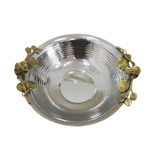 Bol de service en acier inoxydable pour ustensiles de cuisine Utilisation à la maison et à l'hôtel Poignées en feuille d'or Bols de service ronds en métal
