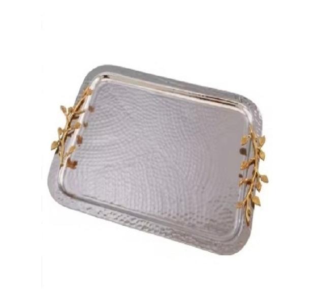 Plateau de service en acier inoxydable avec poignées de travail dorées Forme et taille personnalisées Plateau de service pour la cuisine
