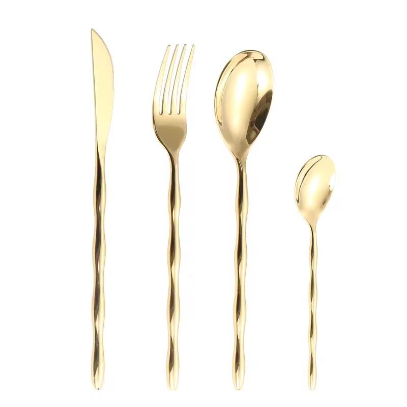 Ensemble de 4 couverts en acier inoxydable, couverts, cuillère, couteau, fourche, tissage, poignées utilisées dans la cuisine, dessus de table, prix plaqué or