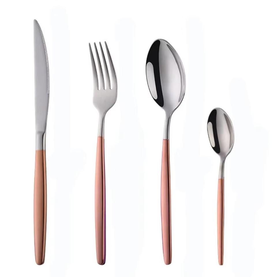 Ensemble de 4 couverts en acier inoxydable utilisés dans les ustensiles de cuisine de table café maison couverts plaqués or couverts à poignée ronde