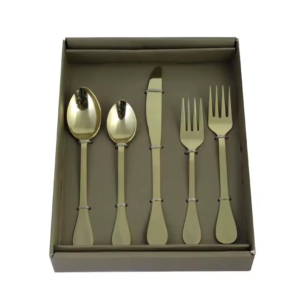 Ensemble de 5 couverts en acier inoxydable couverts cuillère couteau fourchette poignées en bois utilisés dans la cuisine utilisation de table produits plaqué or