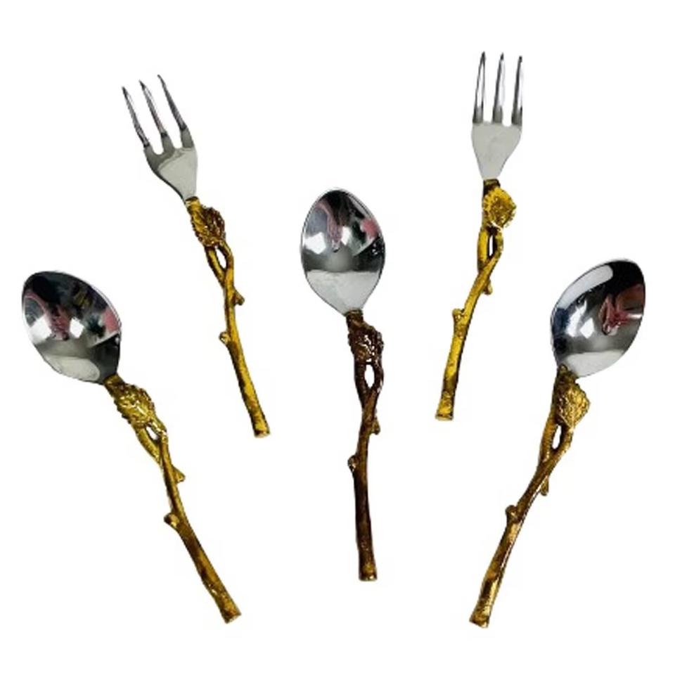 Stainless Steel Set Of 5 Flatware Ideal For Kitchen Tabletop Dining Home Use Gold Color Plated Cutlery Metal Designer Handle