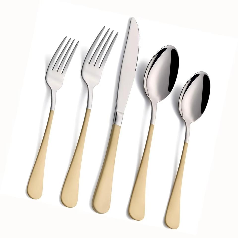 Stainless Steel Set Of 5 Flatware Ideal Kitchenware Tabletop Gifting Home Use Gold Color Plated Cutlery Latest Design Handle