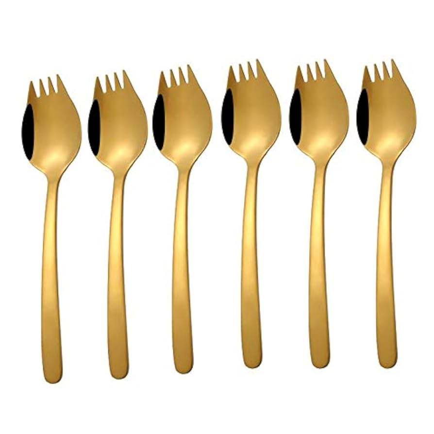 Ensemble en acier inoxydable de 6 couverts fourchette plaqué or idéal pour les ustensiles de cuisine cadeaux de table usage domestique couverts à long manche