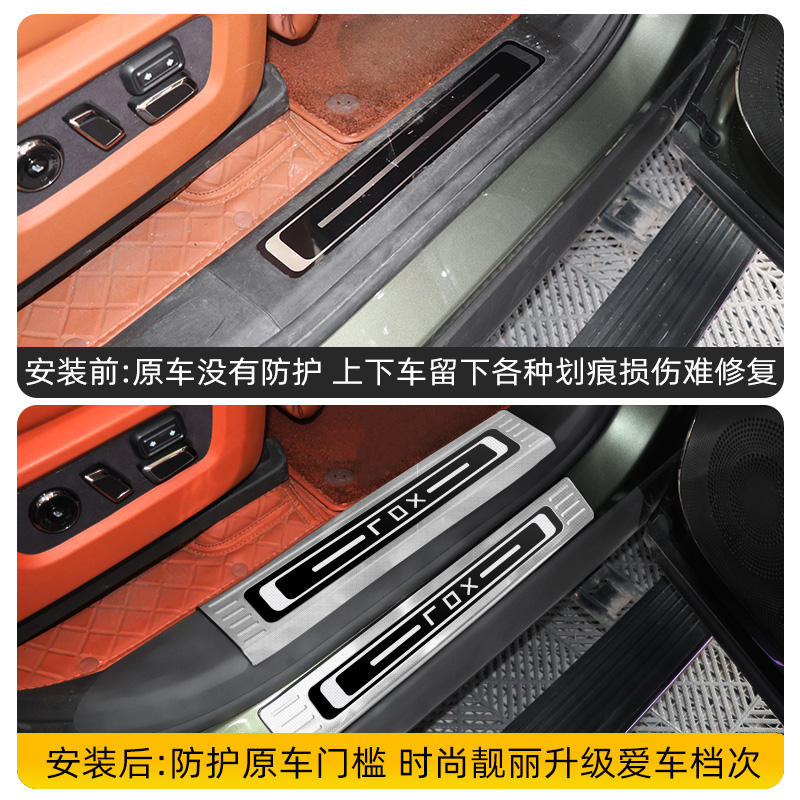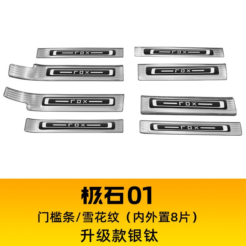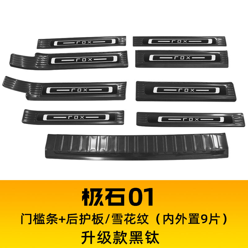 Protection extérieure de seuil de porte en acier inoxydable argent/noir style voiture, installation par ruban adhésif Rox 01