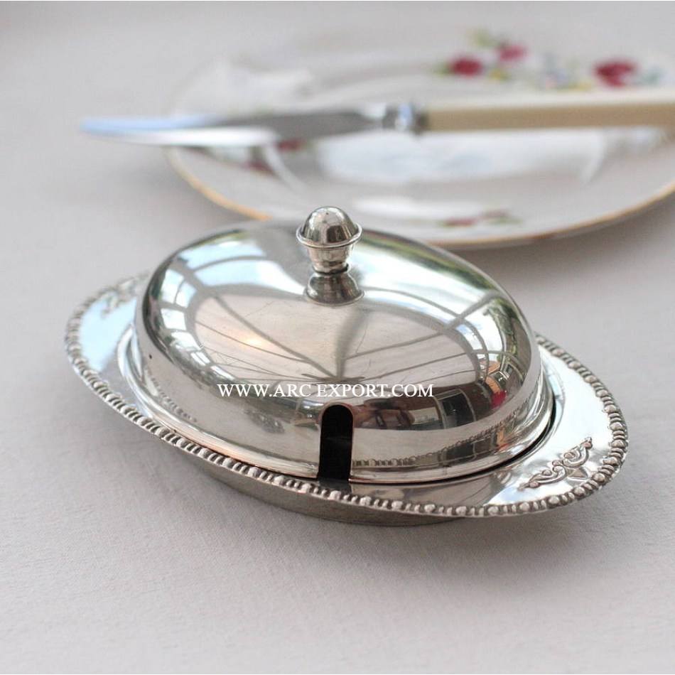 Plat à beurre de couleur argentée d'acier inoxydable pour l'événement d'hôtel de mariage avec le meilleur plat de beurre de portion de forme ronde de qualité pour le dessus de table
