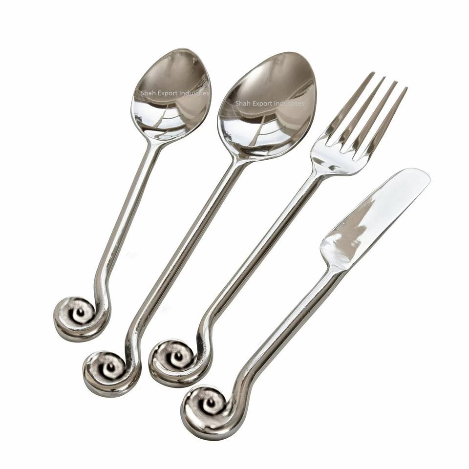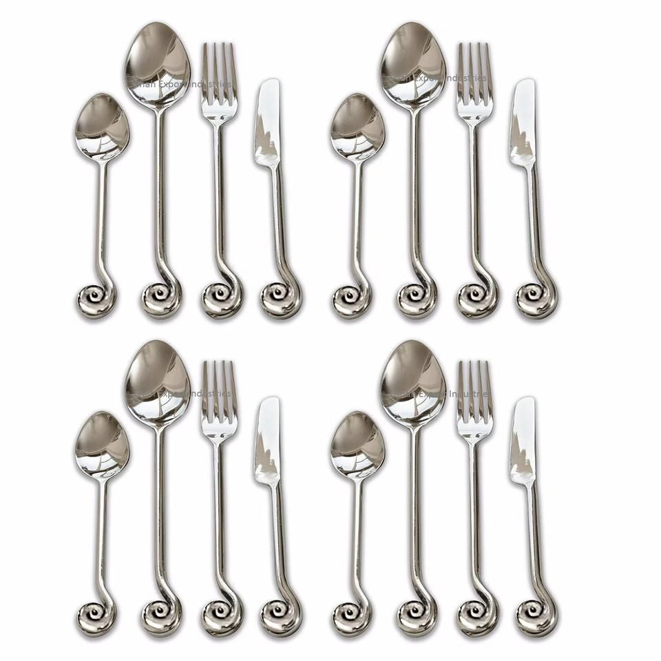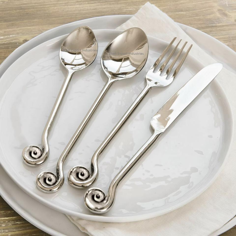 Ensemble de couverts en acier inoxydable argenté avec poignée en spirale torsadée pour restaurant et hôtel Vaisselle de table Ensembles de couverts