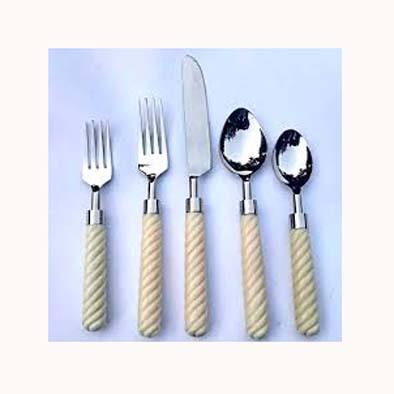Ensemble de couverts en acier inoxydable argenté avec poignée en os avec couverts au design côtelé Vaisselle de table POIGNÉE DE CONCEPTION antique