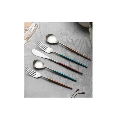 Ensemble de couverts en acier inoxydable plaqué argent Cuillère de Noël Fourchette et couteau avec long manche rond vert sarcelle et doré
