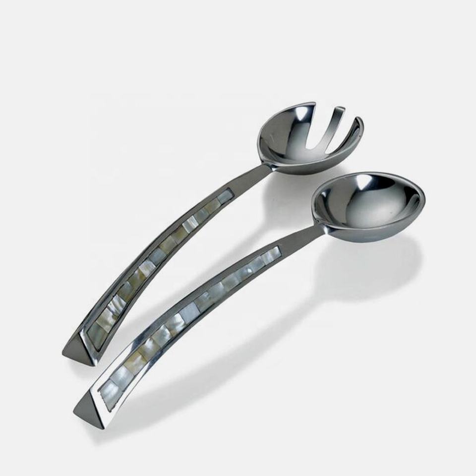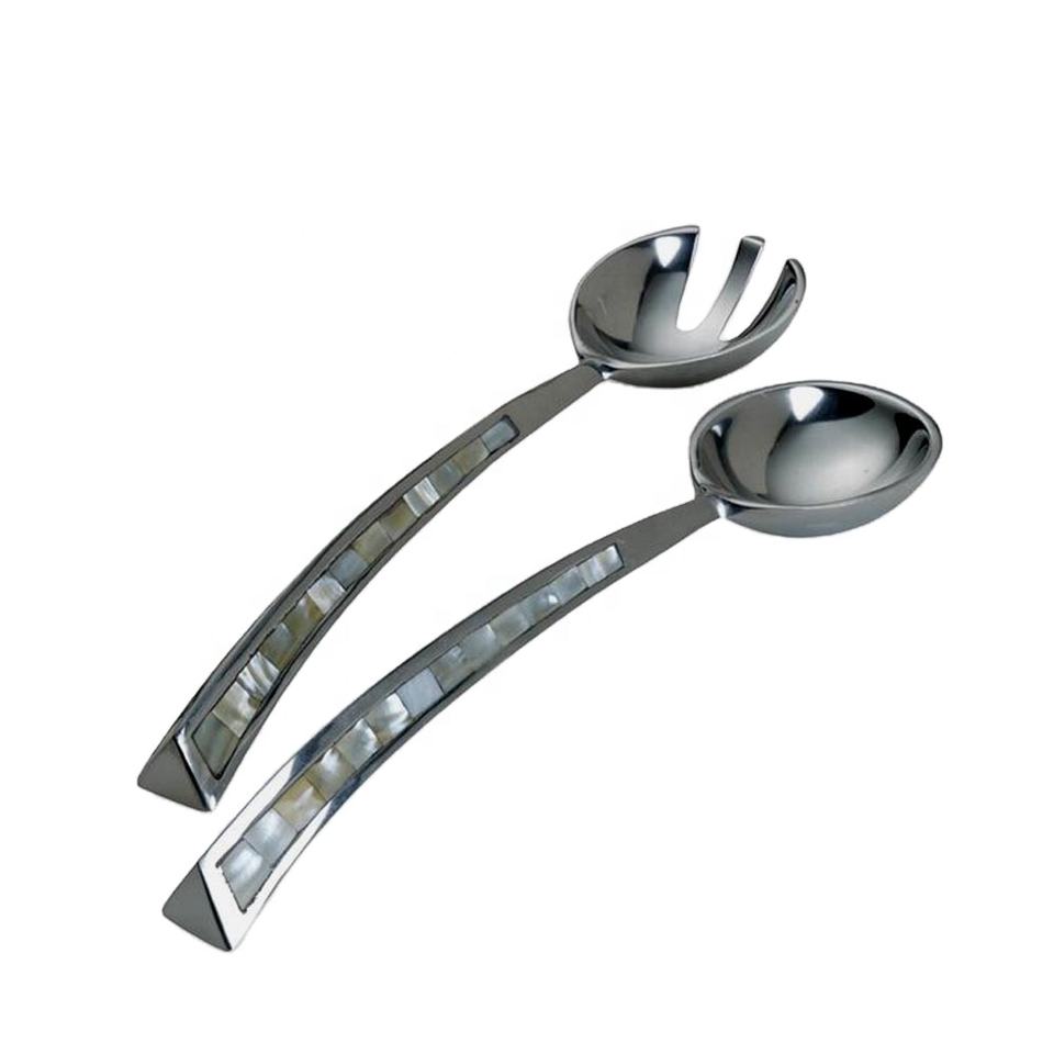 Ensemble de service à salade cuillère et fourchette de service à salade en acier inoxydable argenté poli avec poignée MOP