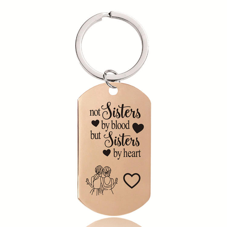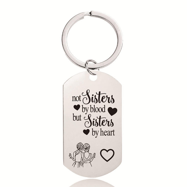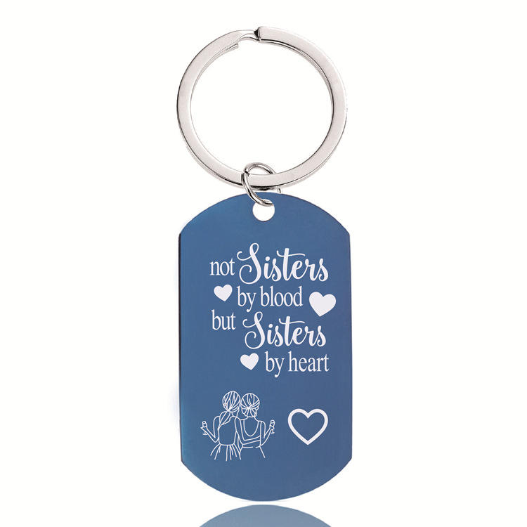 Acier Inoxydable Argent Rose Or 18K Bleu Noir Pas Sœurs par le Sang mais Sœurs par le Coeur Ensemble Porte-clés Collier Bijoux