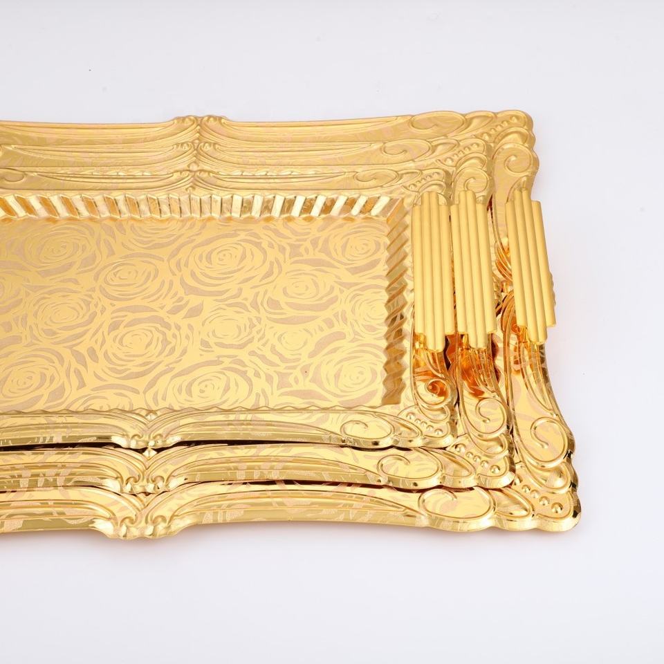 Plateau de service en métal argenté avec poignées Plateau de service en or Plateau rectangulaire en métal de style arabe