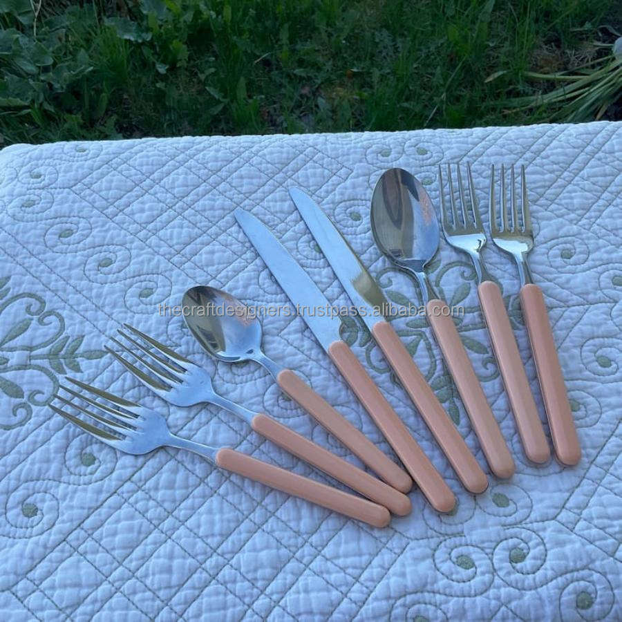 Ensemble d'argenterie et de couverts en acier inoxydable avec poignées en bois Ensemble de couverts durables réutilisables pour pique-nique et camping fabriqué en Inde