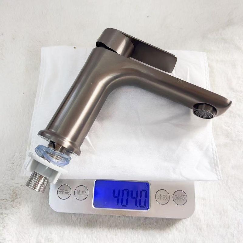 Robinet de lavabo en acier inoxydable à poignée unique, montage sur plan, style moderne, finition bronze canon, monotrou