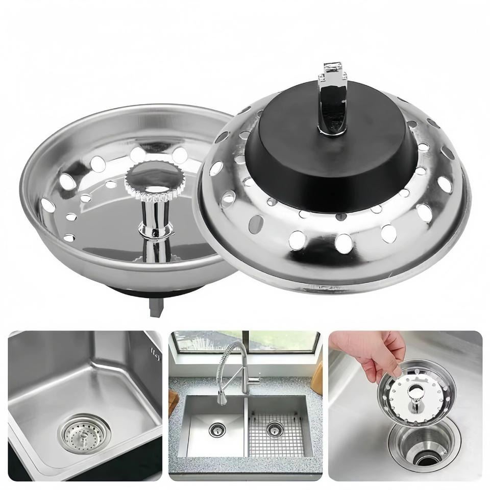 Filtre d'évier en acier inoxydable, panier rond à encastrer avec base en caoutchouc pour évier de cuisine