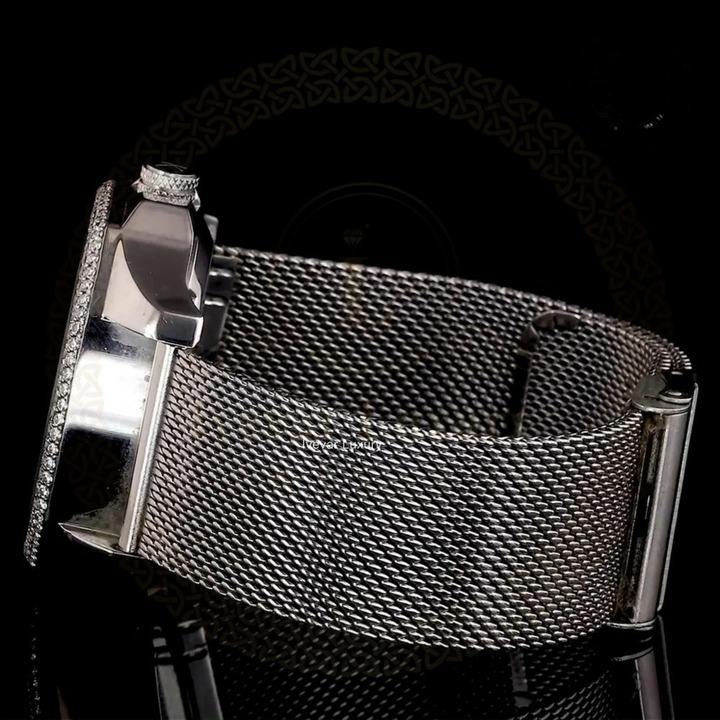 Montre à bracelet squelette en acier inoxydable noir et argent, cadran en verre Moissanite VVS glacé, bijoux de mode pour homme, mouvement à quartz