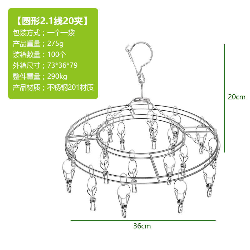 Séchoir à chaussettes en acier inoxydable avec 20 pinces, crochet pivotant coupe-vent, cintre à linge, sous-vêtements, soutiens-gorge, serviettes