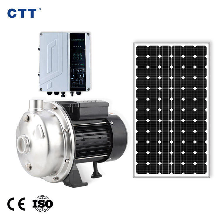 Pompe à eau solaire en acier inoxydable pour la famille, pompe à eau solaire de surface 1 CV avec panneau solaire et onduleur, utilisation hybride de tension