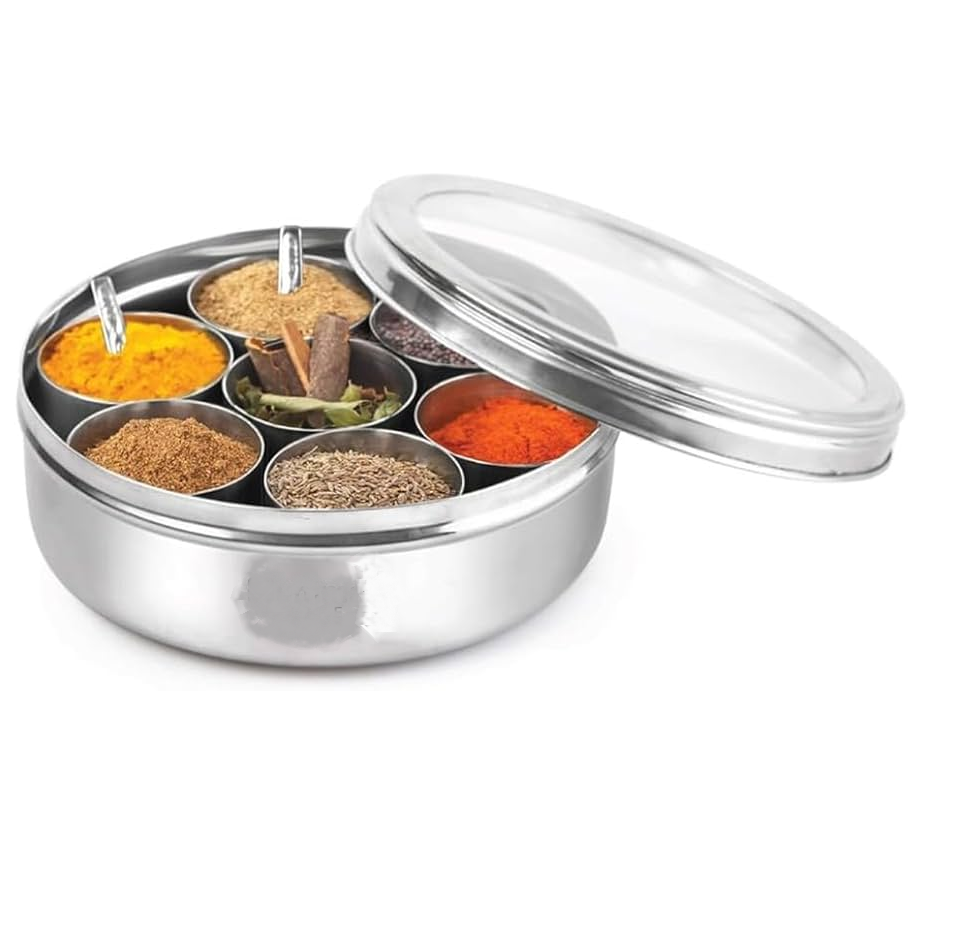 Boîte à épices en acier inoxydable Conteneur Traditionnel Designer Acier Assaisonnement Boîte Ensemble pour Cuisine Restaurant Utilisé Meilleur Prix