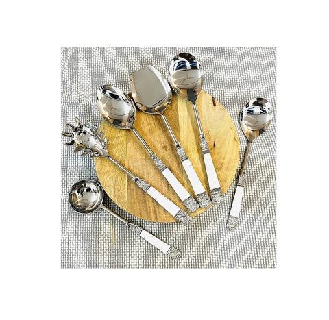 Cuillère de service à salade en acier inoxydable ensemble de 6 pièces meilleure vente personnalisée vente chaude artisanat cuillère ensemble de serveur à salade