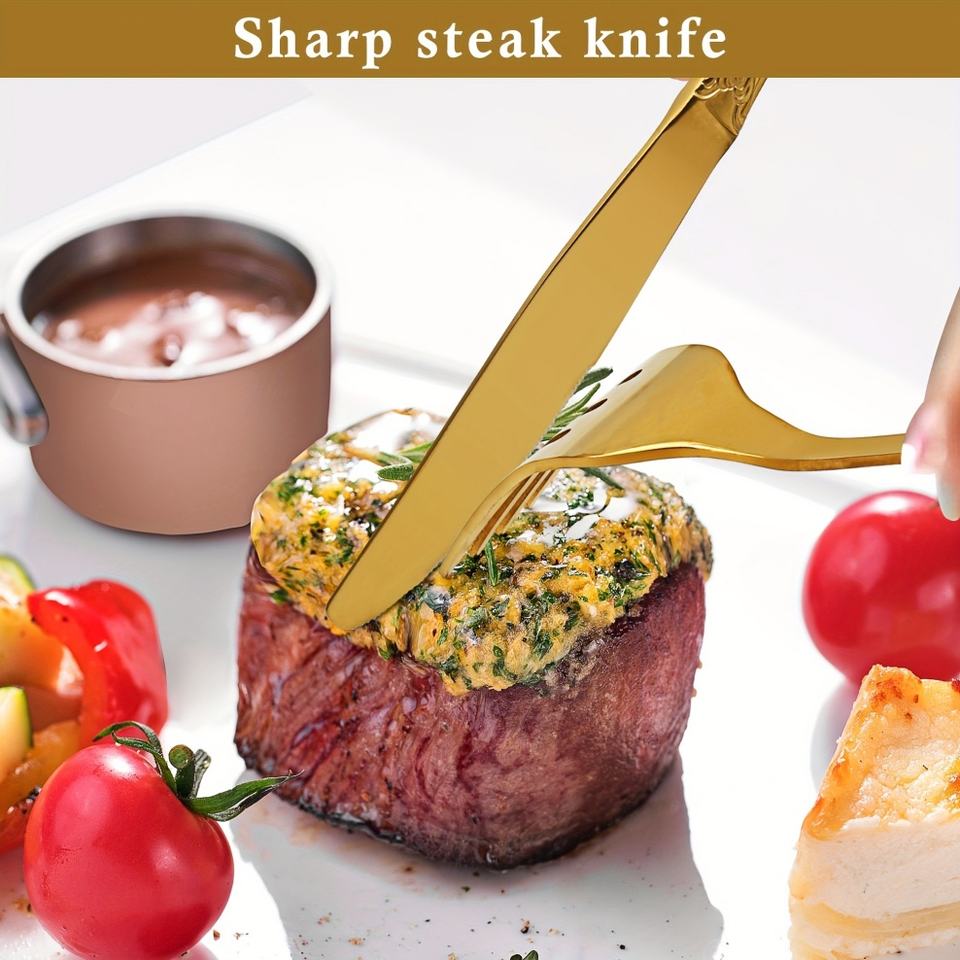 Cuillère et fourchette en acier inoxydable, couverts brillants, couverts de luxe plaqués or, ensemble de couverts haut de gamme