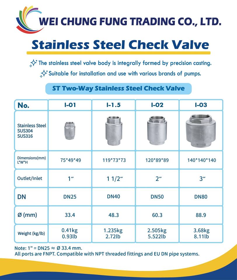 Clapet anti-retour à ressort en acier inoxydable 2 pouces fileté NPT pour système d'eau