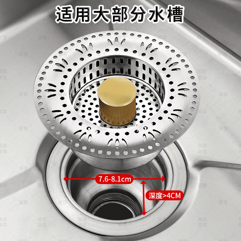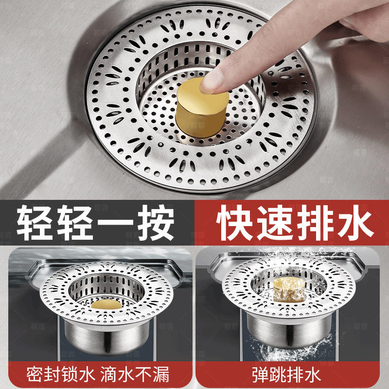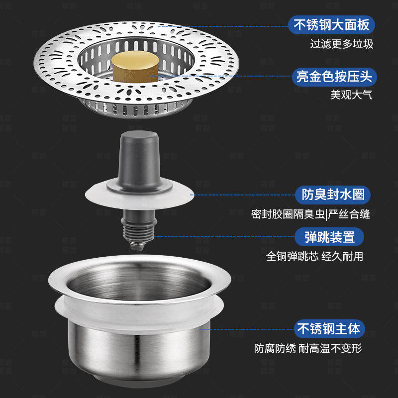 Bonde de vidange à ressort en acier inoxydable, finition brossée, avec valve en laiton, pour évier de cuisine à encastrer, diamètre intérieur standard