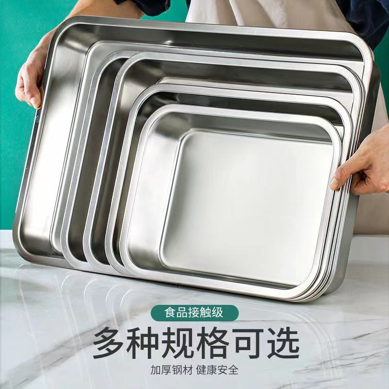 Plateau de service rectangulaire en acier inoxydable, profond et épaissi, pour la restauration hôtelière