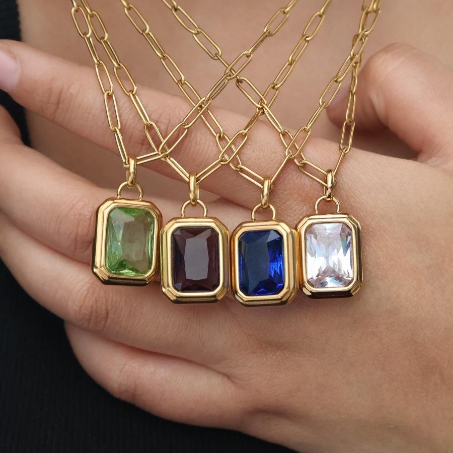 Acier inoxydable Carré Rock Sucre Coloré Zircon Pendentif Trombone Chaîne Collier Ins Haute Louange Couleur Protection