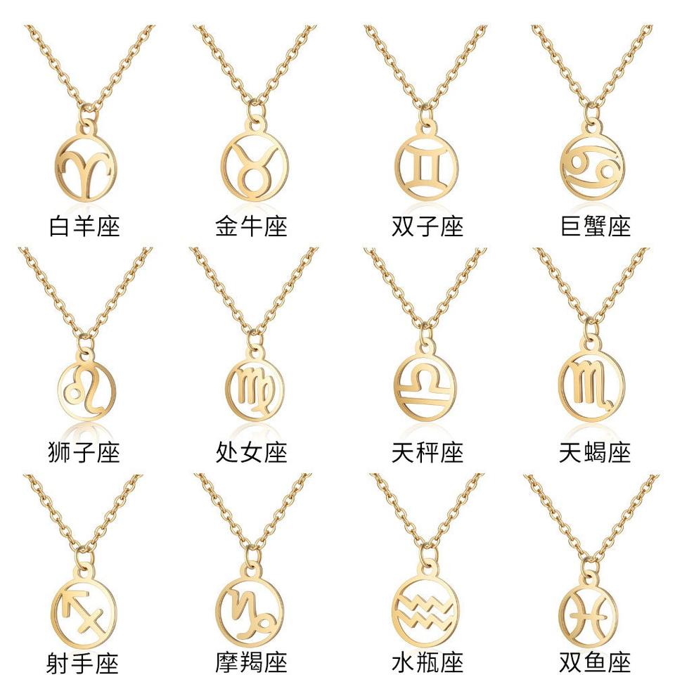 Acier inoxydable Étoile Signe du Zodiaque Collier 12 Horoscope Pendentif Collier Femmes Or Chaîne Collier Hommes Bijoux Cadeau