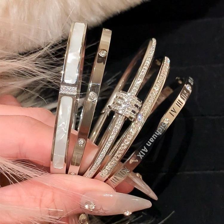 Bracelet en acier inoxydable avec design circulaire ciel étoilé entièrement serti de diamants, tendance et polyvalent pour filles, ne se décolore jamais