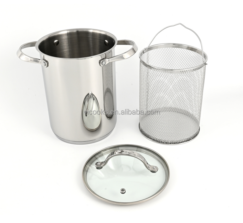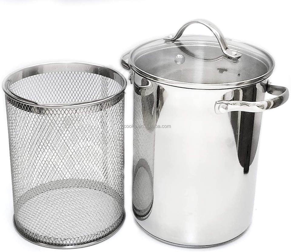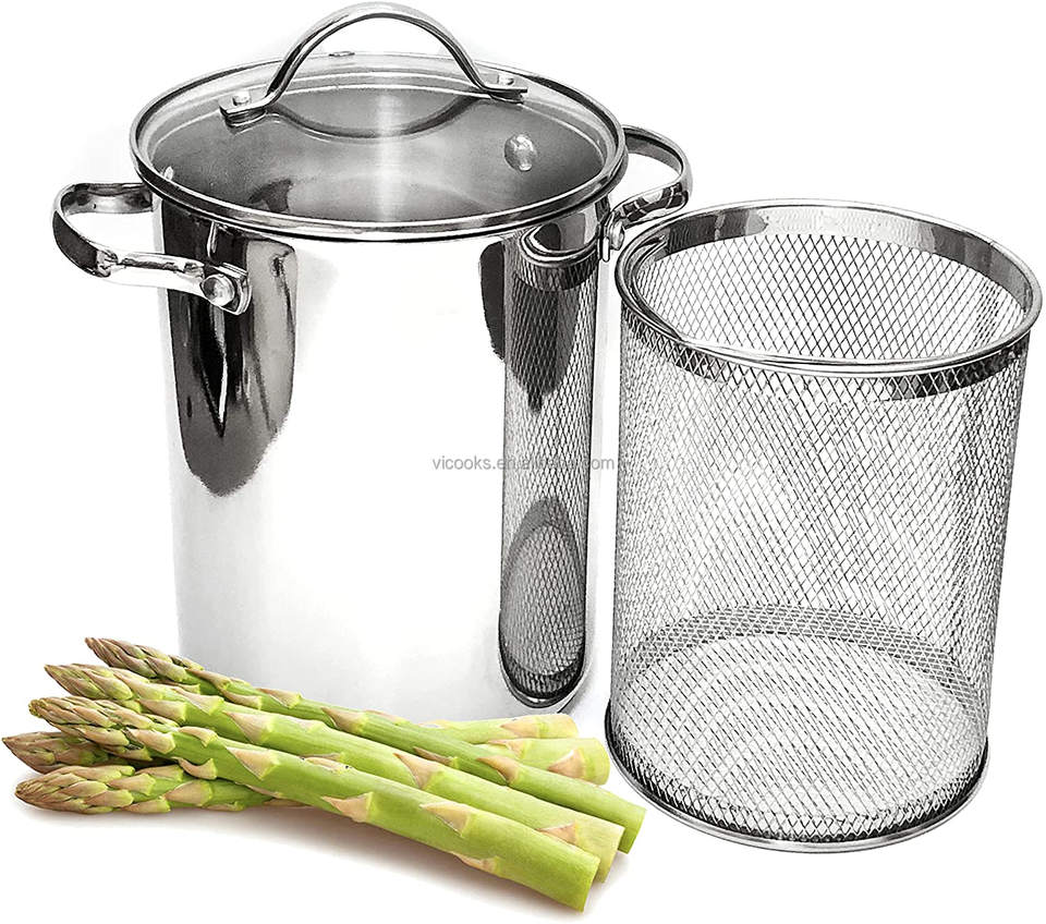 Cuiseur vapeur en acier inoxydable pour pâtes et légumes asperges avec panier amovible et couvercle en verre