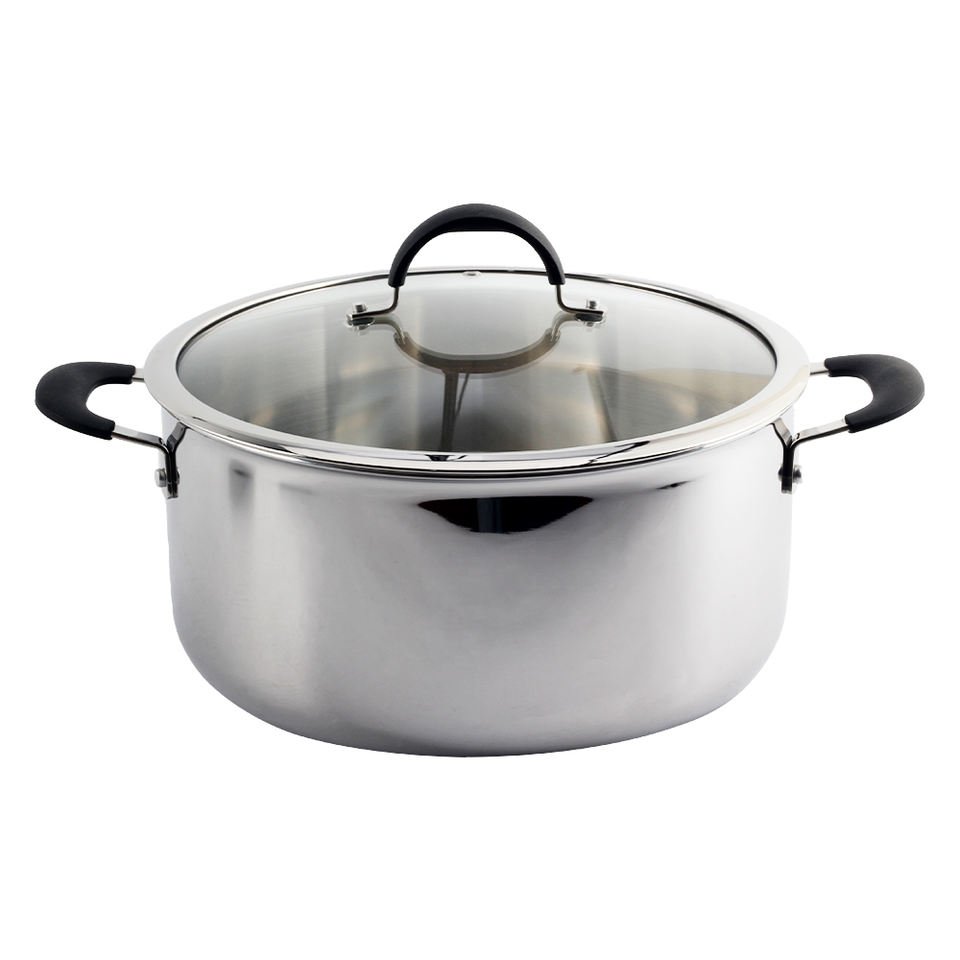 Marmite en acier inoxydable, marmite de 8 pintes à base triply avec couvercle en verre, marmite à soupe à induction compatible avec tous les poêles