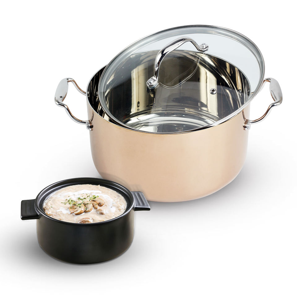 Marmite en acier inoxydable, Marmite en acier inoxydable à trois plis, Couvercle visible