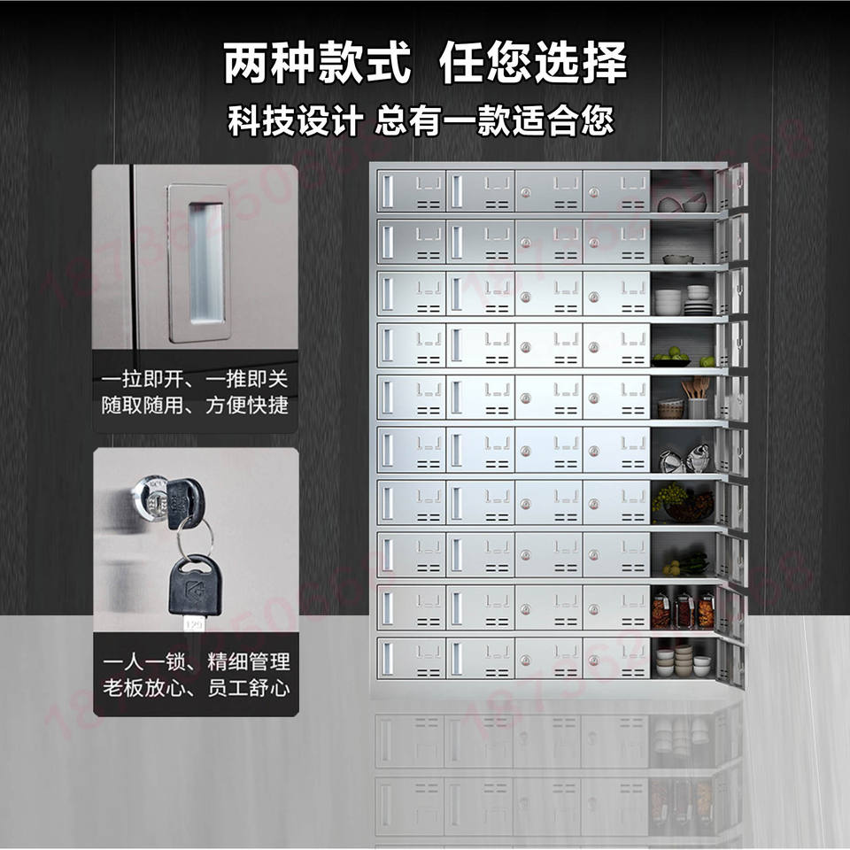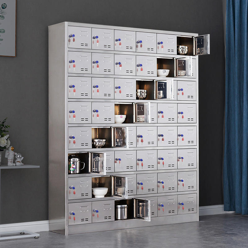 Armoire de rangement en acier inoxydable, 10 niveaux, verrouillable, multi-compartiments, pour cuisine, couverts et vaisselle